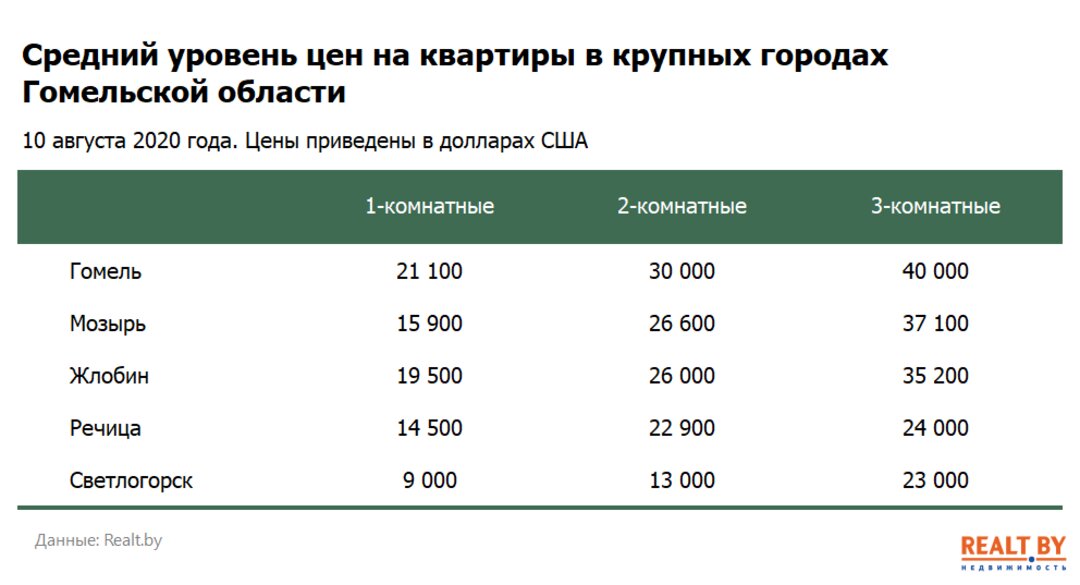 Мониторинг цен предложения квартир в Гомеле и городах Гомельской области за 3−10 августа 2020 года