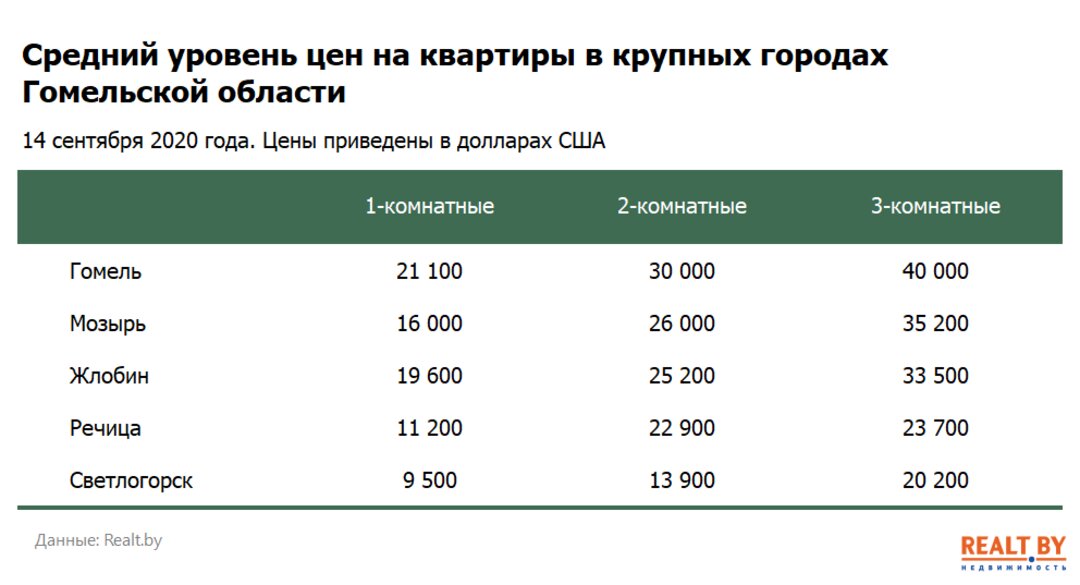Мониторинг цен предложения квартир в Гомеле и городах Гомельской области за 7−14 сентября 2020 года