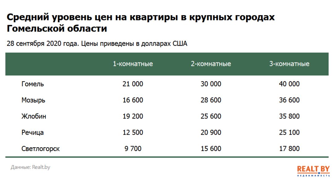 Мониторинг цен предложения квартир в Гомеле и городах Гомельской области за 21−28 сентября 2020 года