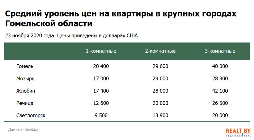 Мониторинг цен предложения квартир в Гомеле и городах Гомельской области за 16−23 ноября 2020 года