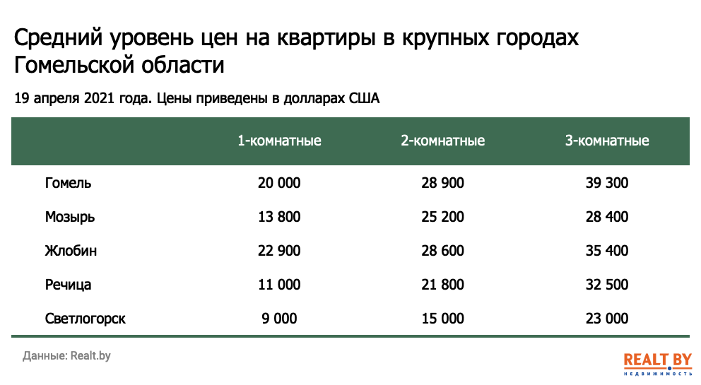 Мониторинг цен предложения квартир в Гомеле и городах Гомельской области за 12−19 апреля 2021 года