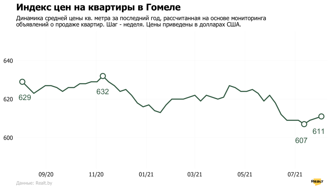 Мониторинг цен предложения квартир в Гомеле и городах Гомельской области за 26 июля — 2 августа 2021 года