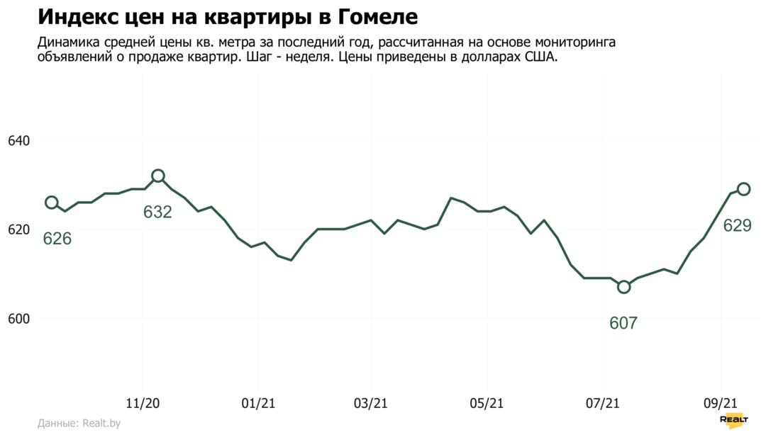 Мониторинг цен предложения квартир в Гомеле и городах Гомельской области за 6−13 сентября 2021 года