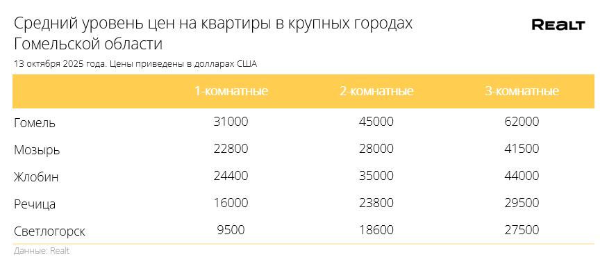 Для сравнения приведем средние цены на квартиры в других городах Беларуси: