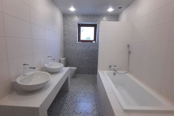 Предложение подороже — коттедж площадью 142 квадратных метра. Это дом 2020 года постройки расположен на участке 8 соток. В доме выполнен современный ремонт из дорогих материалов. Коттедж, который только предстоит наполнить мебелью и техникой, состоит из кухни-гостиной, трех жилых комнат, а также просторной ванной комнаты с сантехникой. В коридоре и кухне — теплые полы. Большая кухня совмещена с гостиной и имеет дополнительный выход на террасу. Ну, а стоит такой дом 135 тысяч долларов.