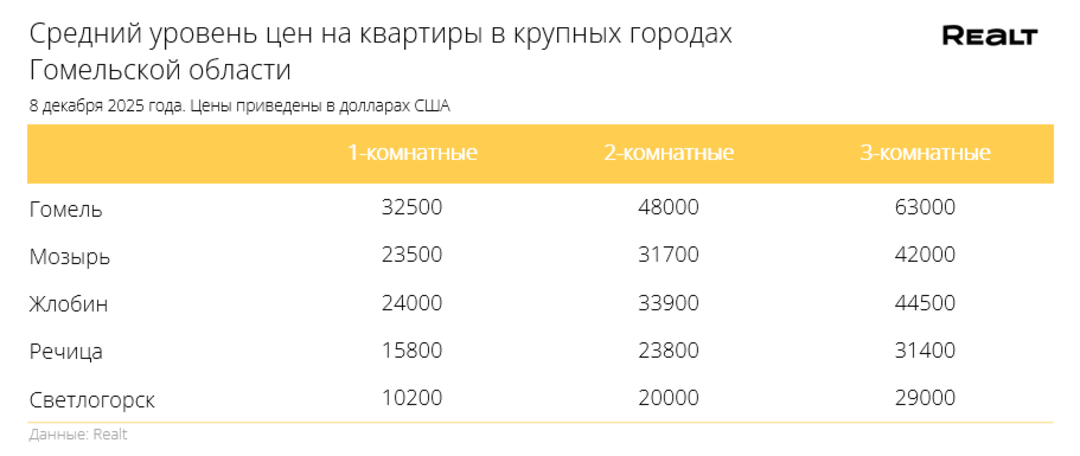 Для сравнения приведем средние цены на квартиры в других городах Беларуси: