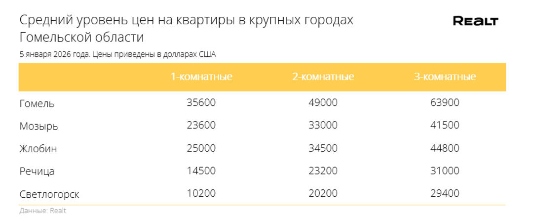 Цены замерли? Что произошло со стоимостью квартир в Гомеле и области за 29 декабря — 5 января 2026 года