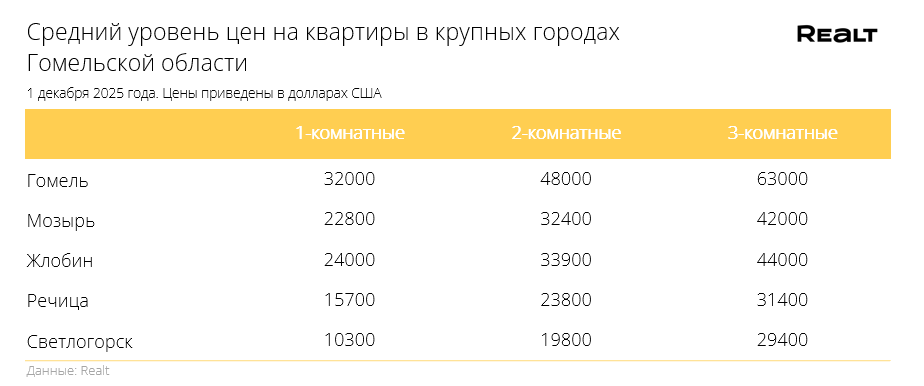 Для сравнения приведем средние цены на квартиры в других городах Беларуси: