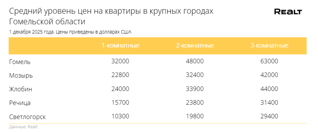 Для сравнения приведем средние цены на квартиры в других городах Беларуси: