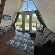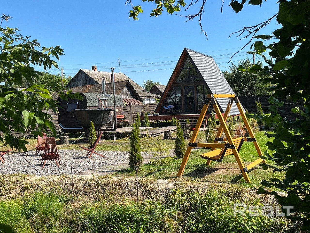 Сдаётся уютный A-frame дом " CHILL " В городе Добруше с панорамными окнами. Дом оборудован всем необходимым для комфортного проживания: 1 этаж: Диван, телевизор, Wi-fi, TV, обеденный стол, колонка Алиса. Кухня: Варочная индукционная панель, холодильник, печь, чайник, посуда. Ванная комната: Душевая кабина, фен, шампунь, гель для душа, мыло, зубная щётка + паста, комплект полотенец.