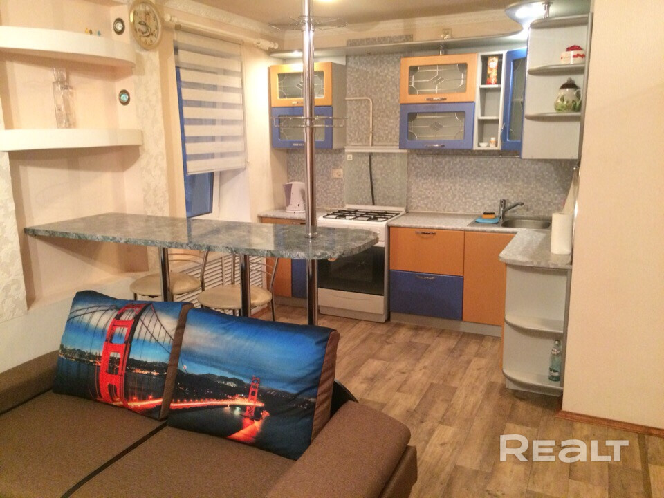 Сдаётся квартира по суточно. Уютная 1-комн. квартира (студия) с современным ремонтом и мебелью. (wi-fi), кабельное тв. Всё необходимое для краткосрочного проживания. Добруш, район сму.