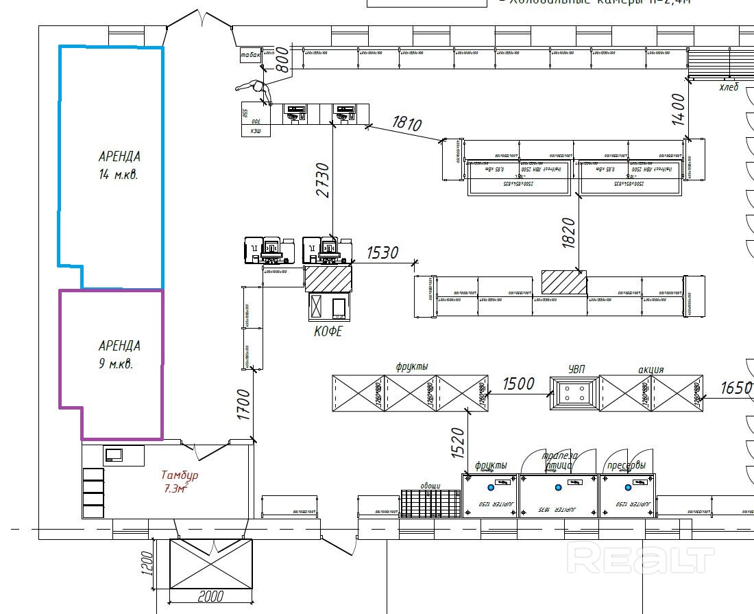 Предлагаем в субаренду торговую площадь от 9 до 23 кв.м. Контур указанный в планировке планируется к выделению из торгового зала магазина. Выделение будет при заинтересованности потенциального арендатора. Приложенная планировка носит илюстрационных характер. Ставка арендной платы договорная