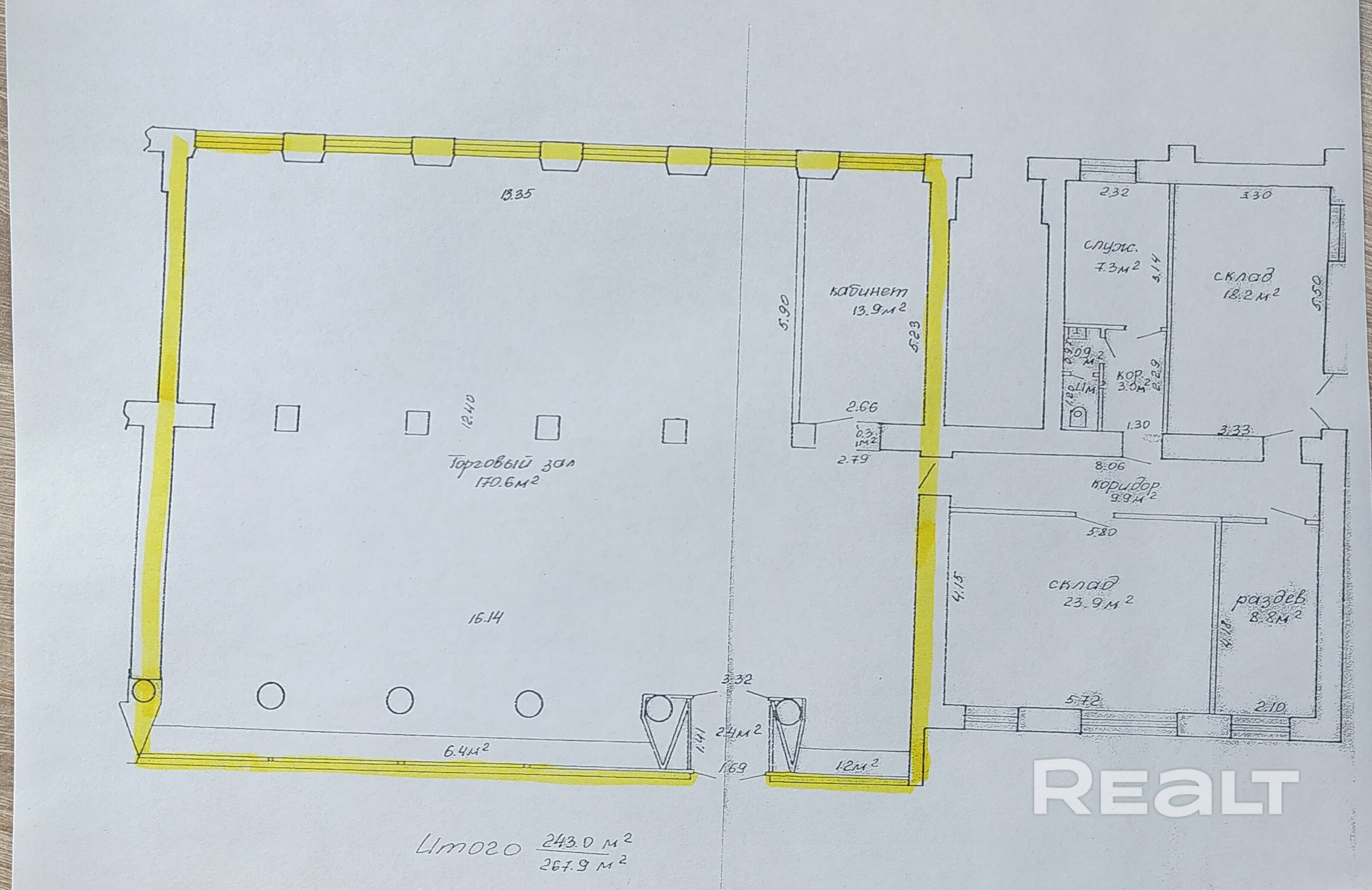Аренда помещения 194,80 м2 по адресу г. Гомель, проспект Победы, 14. Подключены необходимые коммуникации (вода, электроэнергия, центральное отопление), пожарная сигнализация. центральная улица города очень высокий автомобильный и пешеходный трафик. Дополнительная информация по телефону