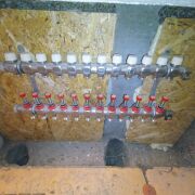 Во всём доме установлены стеклопакеты, централизованно доступны вода и газ, канализация местная (выгребная яма), проведено оптоволокно; все стены утеплены и оштукатурены, на полах (цоколь и первый этаж) выполнена стяжка.