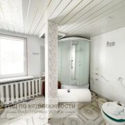 В доме 3 жилые комнаты, кухня 16м2. Обустроенный санузел, газовое отопление (также имеется печь), бойлер, душевая кабина. Канализация местная, выгребная яма на два колодца. Окна ПВХ. Водоснабжение – скважина.