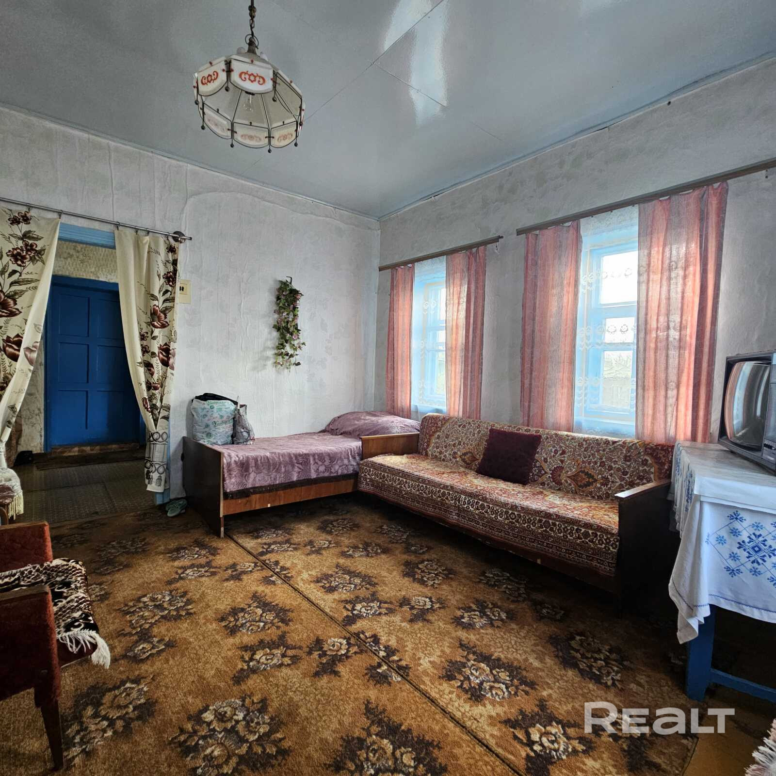 Общая площадь дома составляет 57,9 м2. Он включает две просторные комнаты, кухню, прихожую и хозяйственное помещение, а также сухой погреб для хранения продуктов. Участок большой и ухоженный, на нем расположены хозяйственные постройки, а земля ежегодно обрабатывается и имеет насаждения.