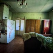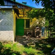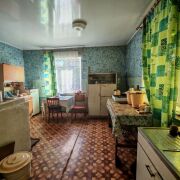 Общей площадью 77м2, жилой 42м2. Три жилые комнаты: 15.5м2, 14.5м2, 12м2. Кухня 13.5м2. Коридор 18м2. Раздельный санузел. Из вспомогательных: веранда, топочная, кладовка. На территории есть гараж, сарай, погреб. В доме отопление- местное паровое ( котёл на дровах), так же есть печь на кухне и грубка. Всё функционирует. Из условий: центральный водопровод, газ привозной, 16 соток земли.