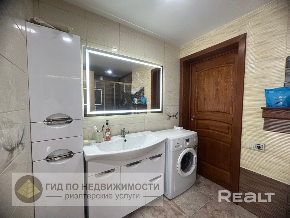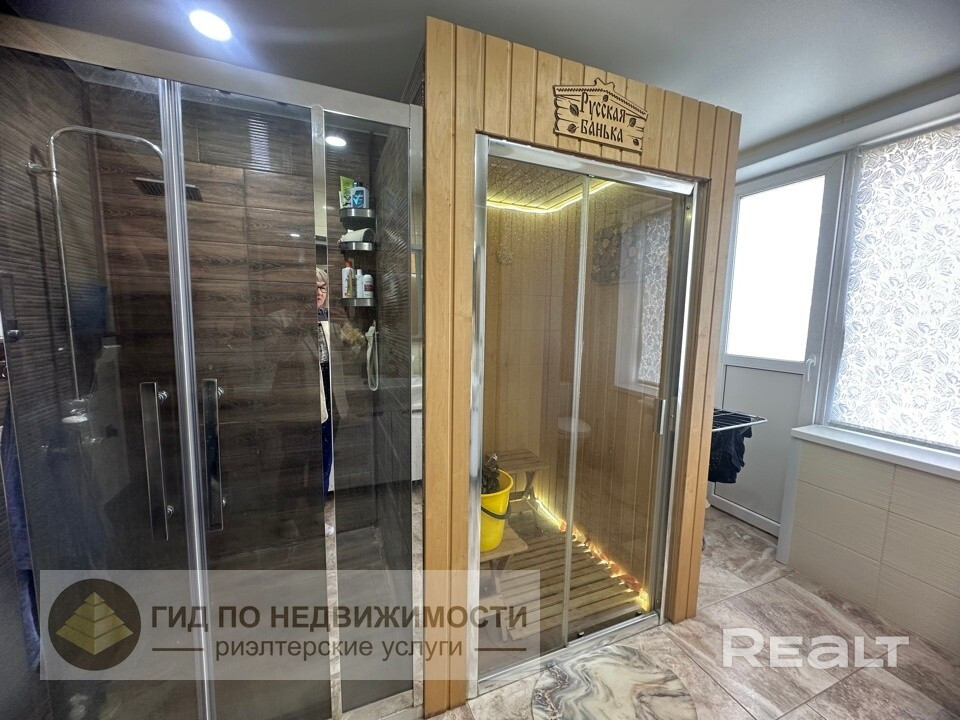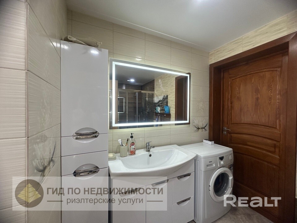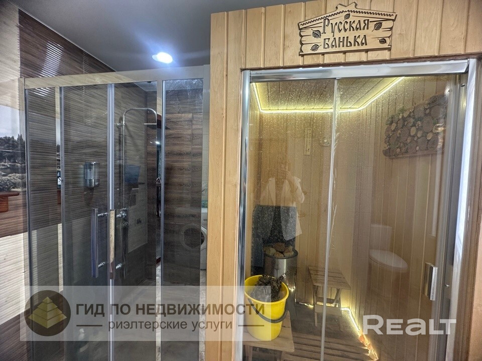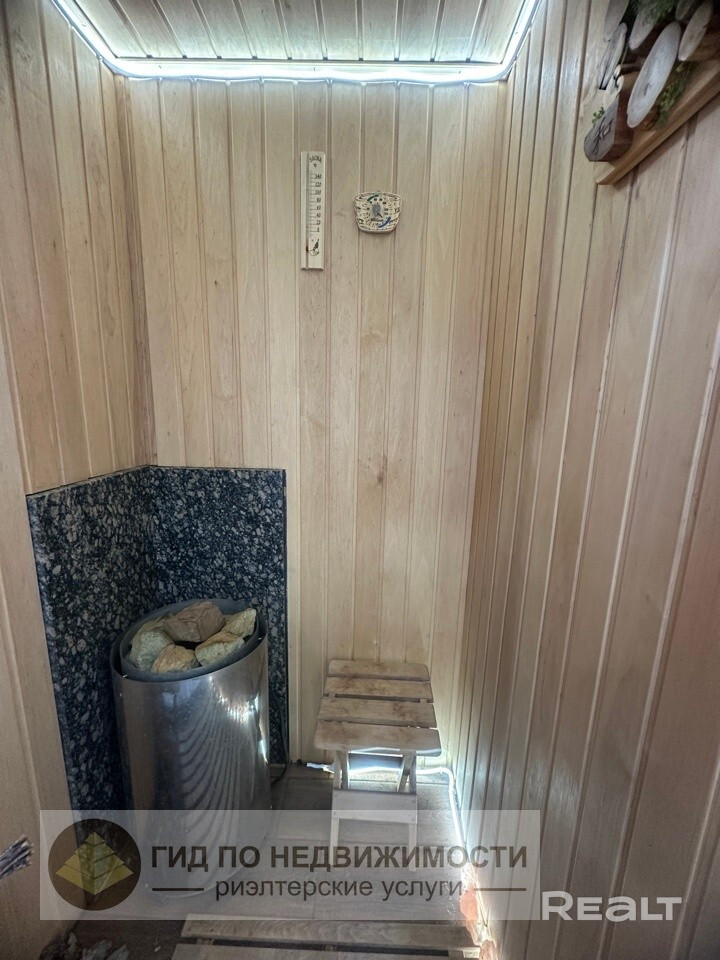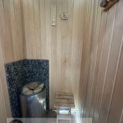 В доме два жилых этажа. На 1-м этаже просторная гостиная 21м2, кухня 13,6м2 и санузел. На 2-м этаже две спальни и просторный санузел с сауной.