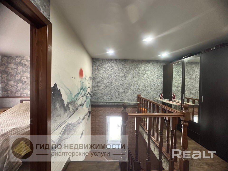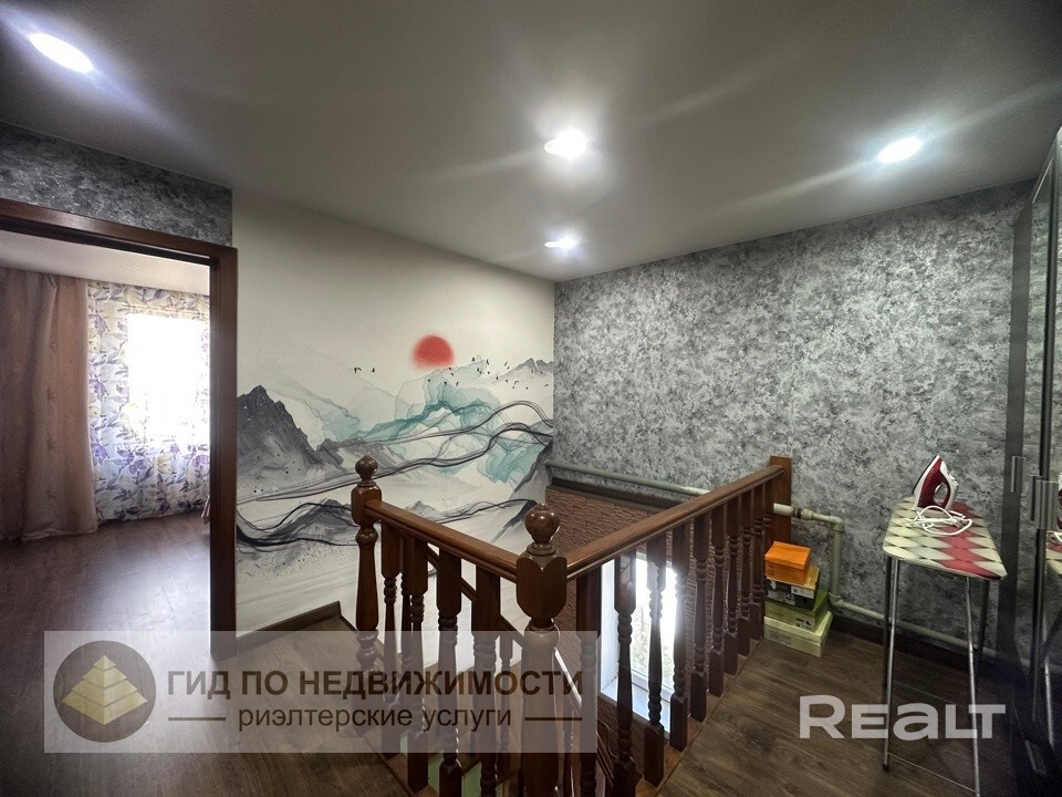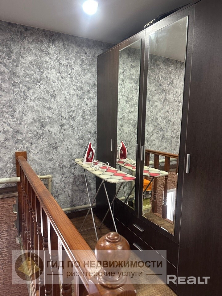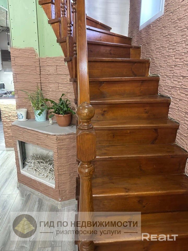 Дом 1995 года постройки. Крыша – шифер. Стены дома и перекрытия между этажами – железобетонные плиты. Окна ПВХ. На второй этаж ведет удобная деревянная лестница. В комнатах выполнен хороший ремонт, с отделкой из натурального дерева, межкомнатные двери – массив. Встроенная кухня. Все коммуникации (свет, вода, газ) заведены в дом, канализация местная.
