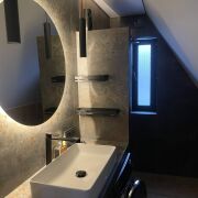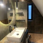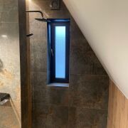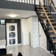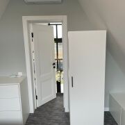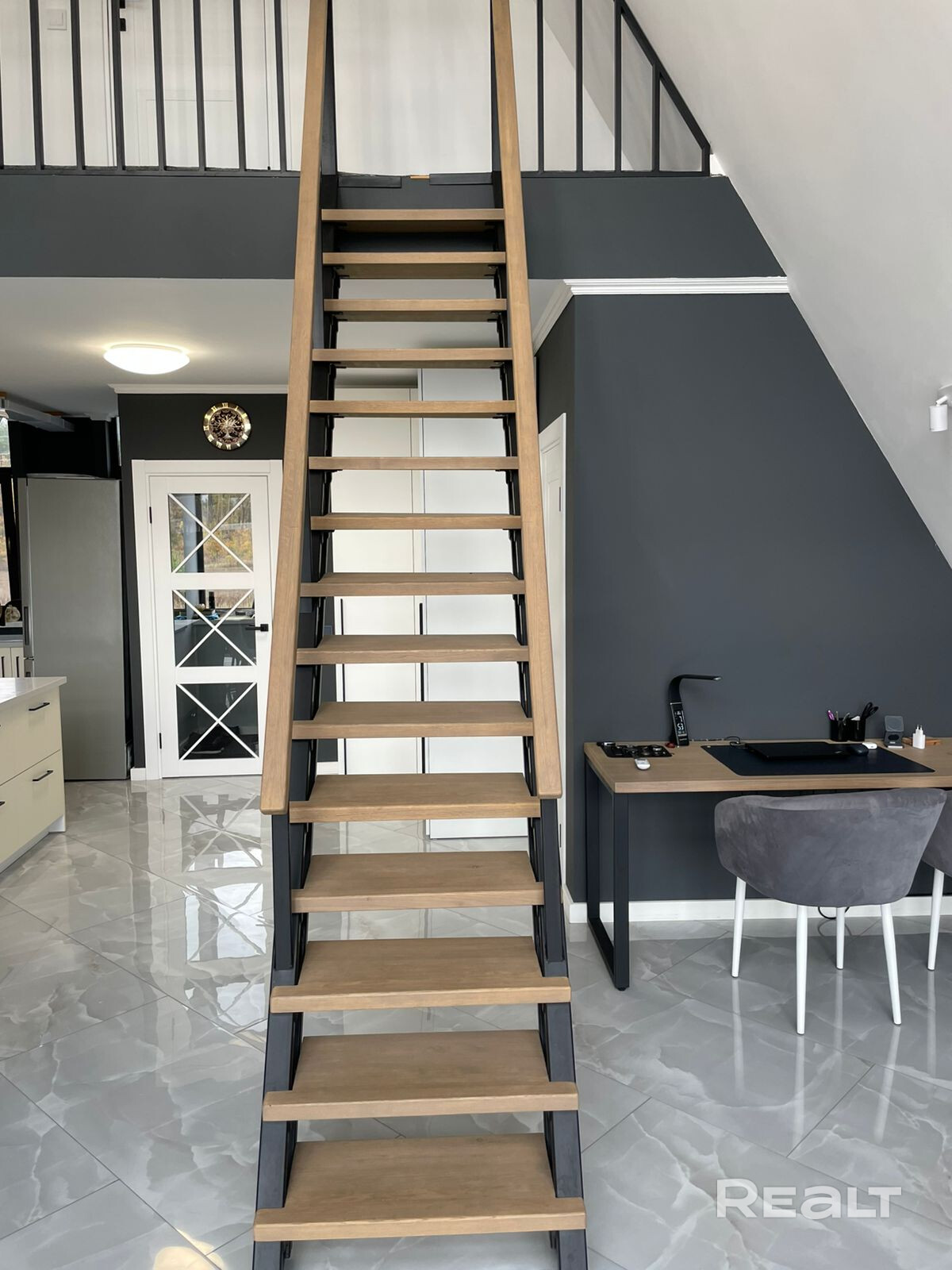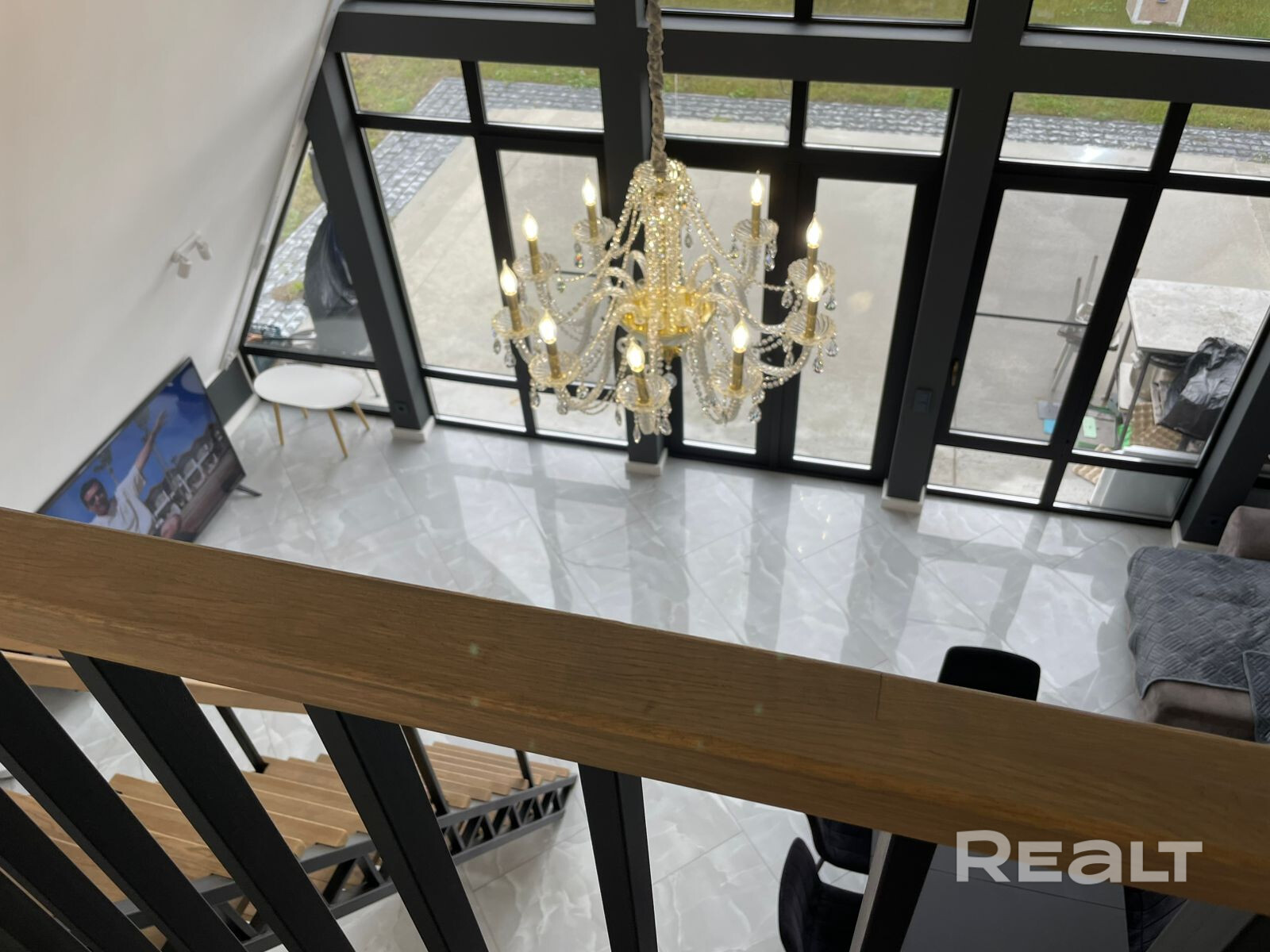 Дом находится в тихом месте района "Романовичи". С одной стороны дома лес, где не планируется новых построек, с другой стороны, недалеко от дома, участок леса и озеро. Соседи проживают только с одной стороны. С двух других на текущий момент (уже долгое время) соседей нет. Дом в стиле A-frame, со всеми плюсами и минусами данного формата дома. Обычно такие дома строят для временного (периодичного) проживания, но данный дом строился именно для постоянного проживания.