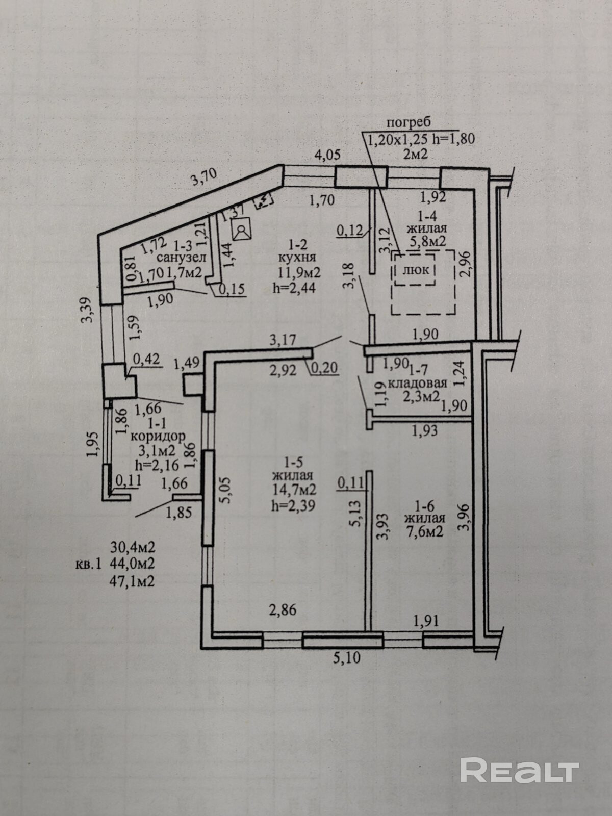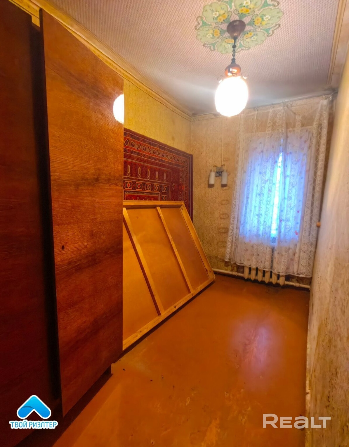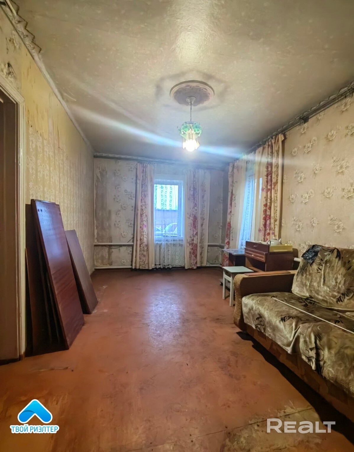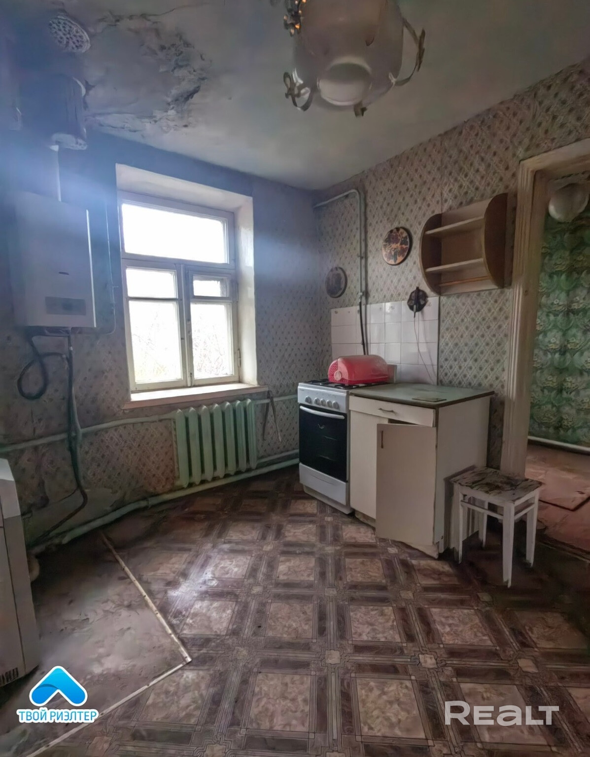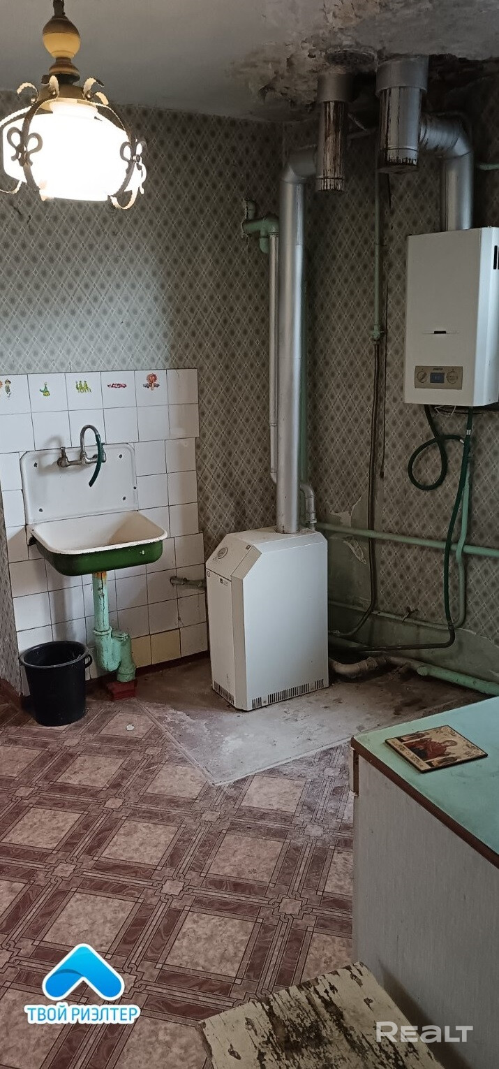 Дом одноэтажный, бревенчатый, крыша оцинкованная, три окна - ПВХ, остальные стандартные, полы деревянные, входная и межкомнатные двери стандартные. Две комнаты изолированы, одна проходная, кухня - 12 м2, есть кладовая. Общая площадь квартиры - 47,1м2 по СНБ. Высота потолков - 2,44м. Отопление газовое (одноконтурный котел), вода центральная, есть газовая колонка для нагрева воды, канализация местная, Санузел в доме, есть душевая точка. В доме погреб. Участок в пожизненно наследуемом владении, площадью 3 сотки. Отдельный вход, участок огорожен. Хорошие соседи. Возможен заезд автомобиля на участок. Прекрасная геолокация, в шаговой доступности школы, поликлиники, магазины, остановки общественного транспорта.