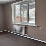 В доме три жилые комнаты, большая столовая соединенная с кухней, санузел совмещённый, имеются две кладовые комнаты. В спальне и прихожей установлены встроенные шкафы. Кухня и вся техника остаётся покупателю. Имеются два входа,везде установлены окна ПВХ.В комнатах натяжные потолки,на полу застелен ламинат.Заменена новая проводка.Отопление газовое и есть котел на твердом топливе, подогрев воды от газовой колонки.Центральное водоснабжение,выгребная яма.Имеется гараж с погребом, хозпостройка.