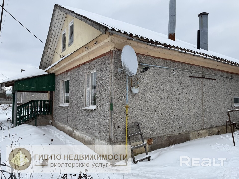 Межкомнатные двери и мебель из натурального дерева. Аккуратное жилое состояние. Год постройки 1992, дом изначально был построен для переселенцев с загрязнённых зон после аварии на ЧАЭС. Водопровод центральный, канализация центральная, отопление – газовый котел. Площадь участка 17 соток. На участке имеются хозпостройки: теплица, сарай. Плодовые деревья, кустарники, клубника. В деревне есть детский сад, школа, больница, магазины. Недалеко от дома лес и большое озеро.
