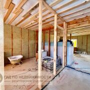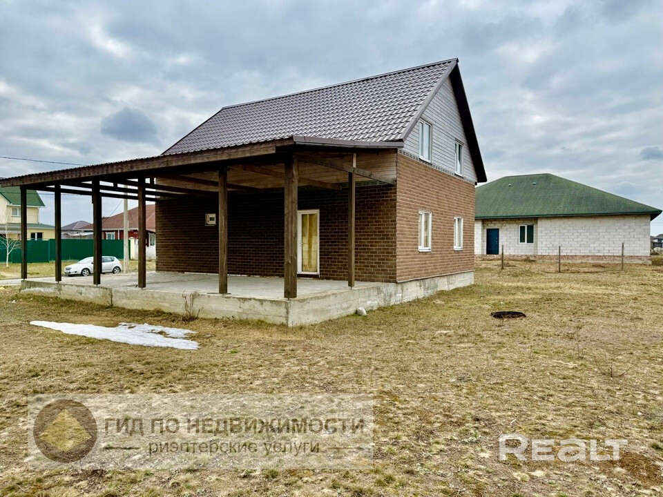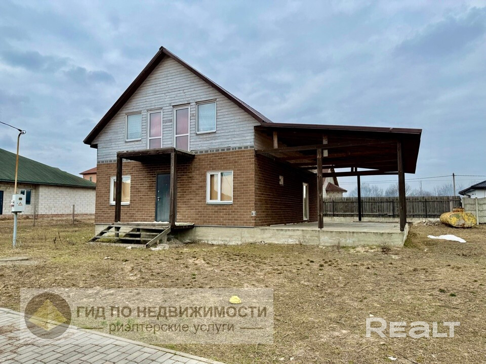 Продается дом в Гомеле, Новобелицкий район, ул. Престижная (п. Красный Маяк). Год постройки 2019. Строительство дома не завершено.  Фундамент – ленточный, монолитный железобетонный. Стены наружные – блоки ПГС толщиной 260 мм, стены внутренние – из блоков ПГС толщиной 100/300 мм. Окна ПВХ. Кровля – металлочерепица. Электричество разведено по дому. Стены утеплены минеральной ватой, далее облицовка стен и потолков предусмотрена гипсокартоном (имеется материал для этих работ). Отопление по проекту от котла на природном газу (не смонтировано). Водоснабжение  – центральное. Канализация  – центральная.  Общая площадь дома 149,8 кв.м. Количество спален предусмотрено 4, гостиная, котельная, кухня, санузел, тамбур, холл, балкон.