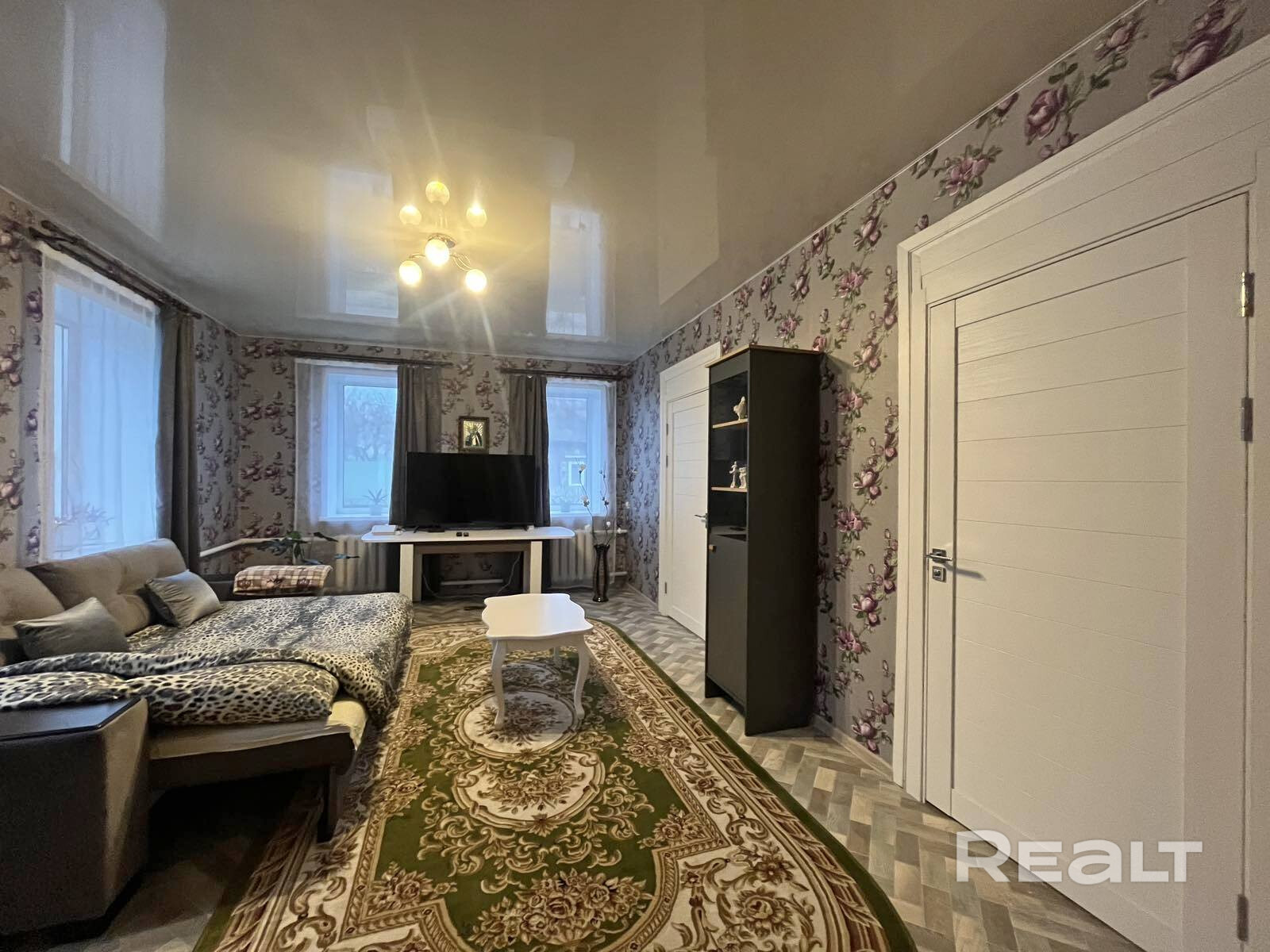 В продаже просторный благоустроенный кирпичный жилой дом общей площадью 83,8 кв м на участке 25 соток в Гомельской районе Гомельской области, Прибытковский сельсовет, д. Климовка, ул. Совхозная 1-я (южное направление, 12 км от Кристалла). Дом обладает всеми необходимыми для современной жизни характеристиками: электричество 220 и 380 В, газовое отопление (есть также рабочая печь и котел на твердом топливе), центральное водоснабжение (есть также скважина на участке), местная канализация, ванная, туалет внутри помещения. Новая шиферная крыша, крепкий фундамент, дом утеплен и оштукатурен. Выполнен внутренний косметический ремонт-натяжной потолок, оклейка обоями, деревянные полы, новые межкомнатные двери, оконные проемы профиль ПВХ. Приборы учета воды, газа, электричества, есть телефон, интернет. На участке просторный кирпичный гараж с освещением, смотровой ямой и подвалом, 2 сарая, баня. Участок на праве пожизненного наследуемого владения, разрабатывается каждый год, есть фруктовые деревья и кустарники. Есть въезд для автомобиля на участок. Улица широкая, освещаемая, населенный пункт (д. Климовка) очень оживленный и благоустроенный-4 магазина, школа, медицинский пункт, почта, в конце улицы река Уть , вокруг деревни лесной массив с грибными и ягодными местами. Отличное транспортное сообщение-от дома до ж/д станции Каравышень 3 мин, автобусная остановка 3 мин (маршрут Гомель-Зябровка), маршрутное такси каждый час.
