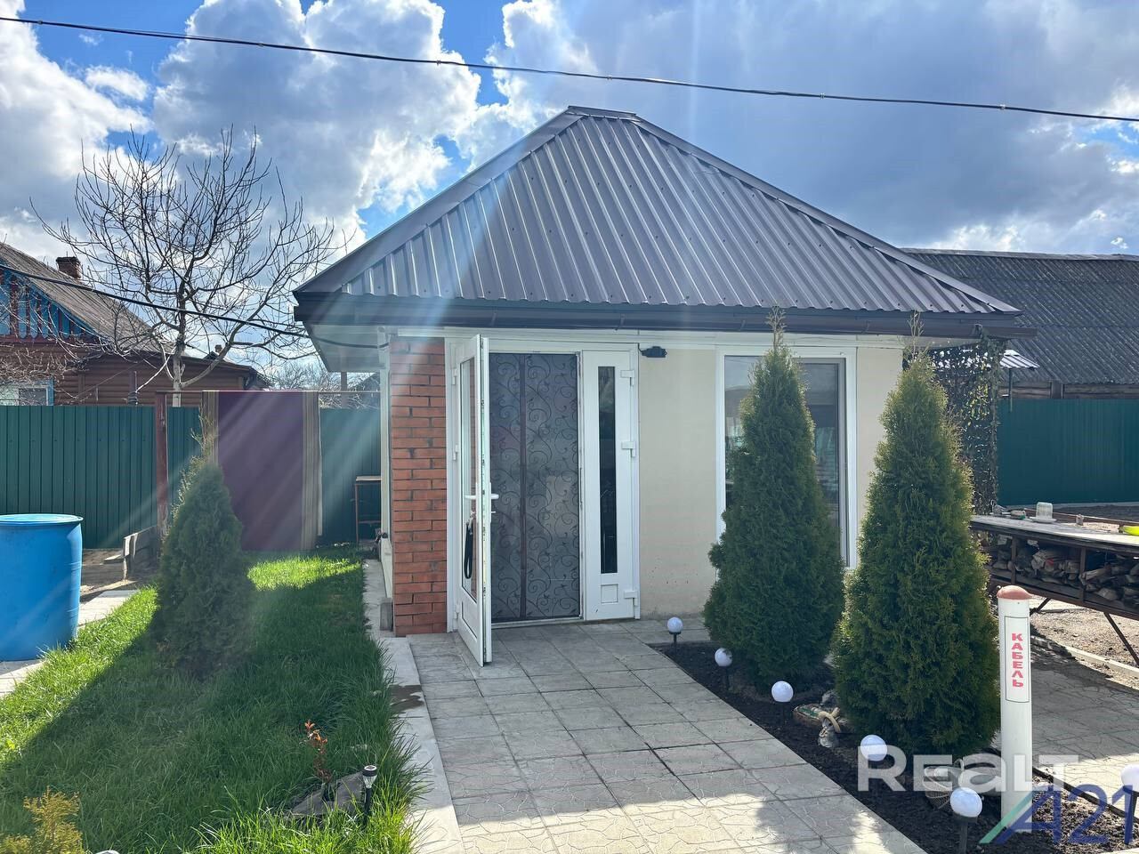 Продается дом в д. Красная Нива, Дудинский с/с. Всего 6 км от г. Калинковичи. Большой участок 25 соток, облагорожен, огражден, уложена плитка, построен летний домик.