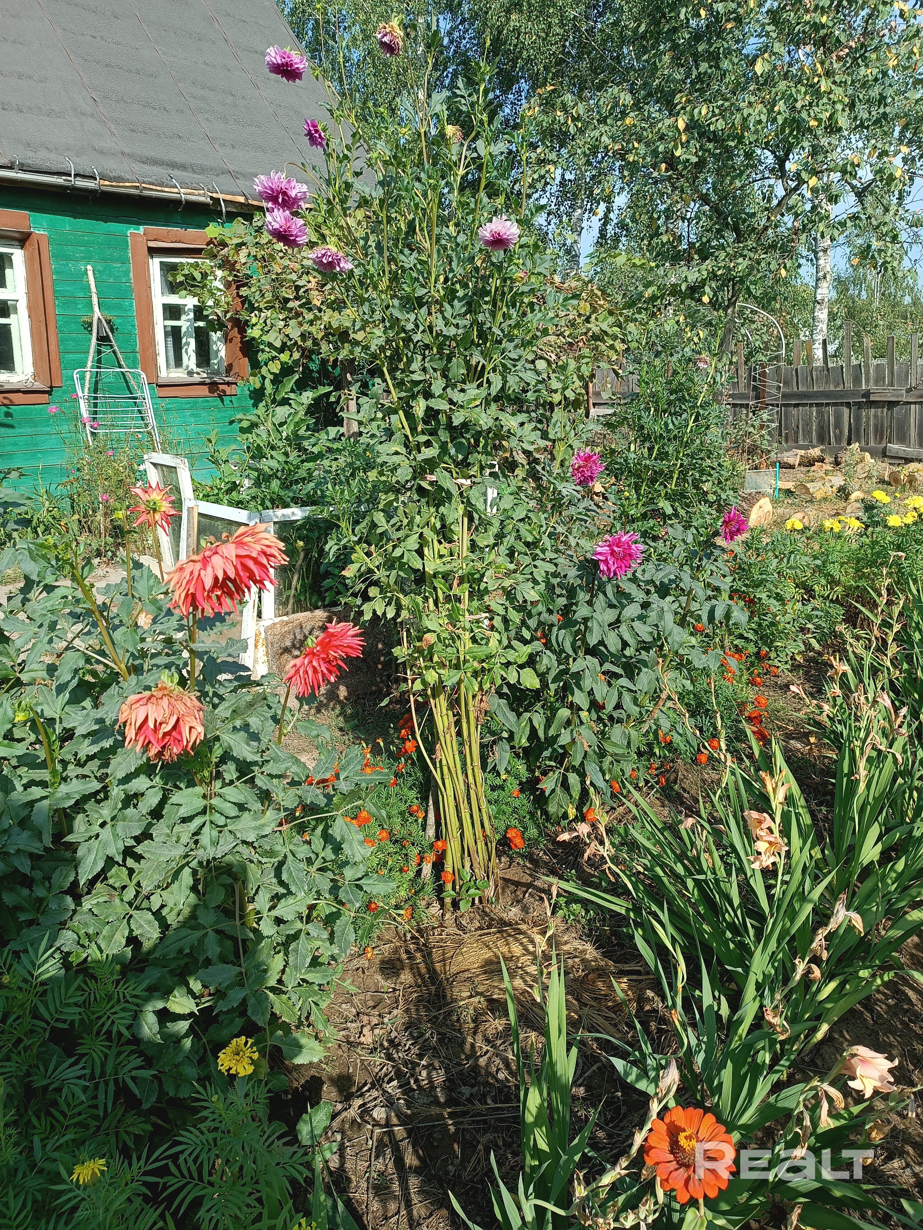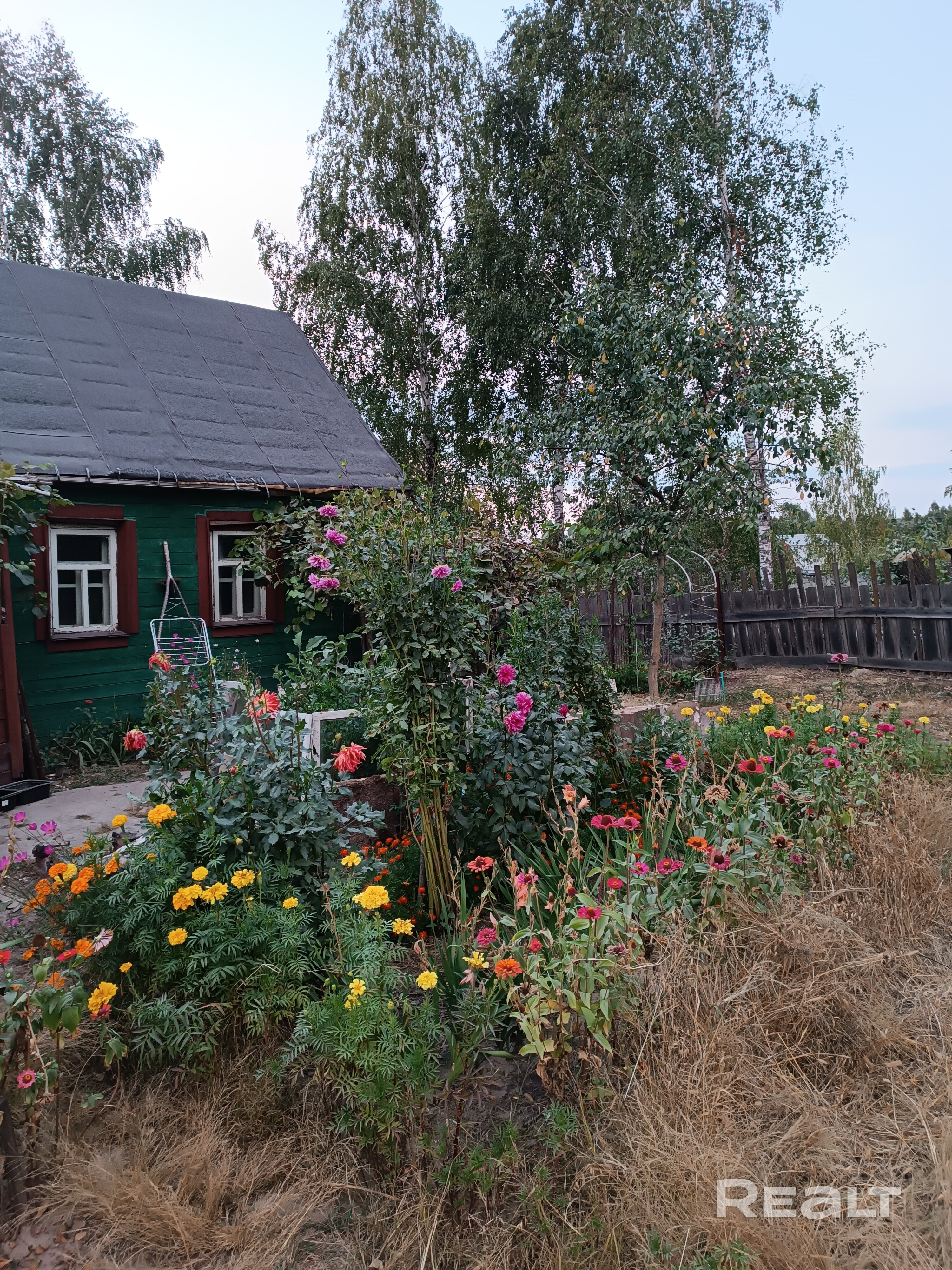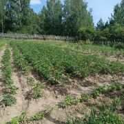 кусты,деревья,огород разработан и засажен,огороженна забором