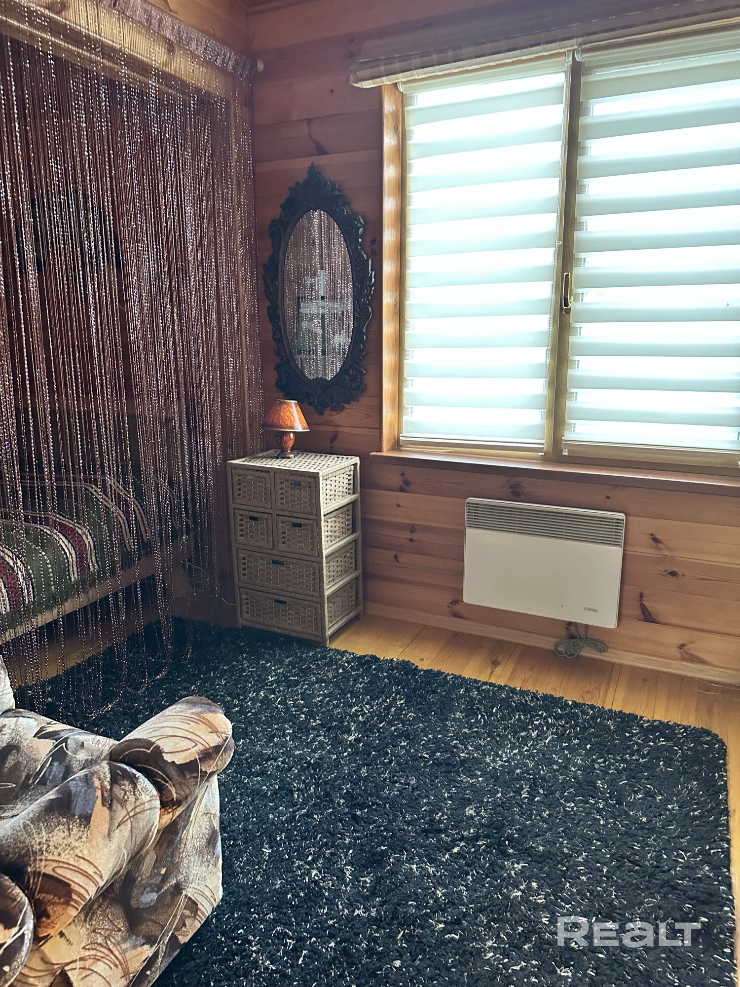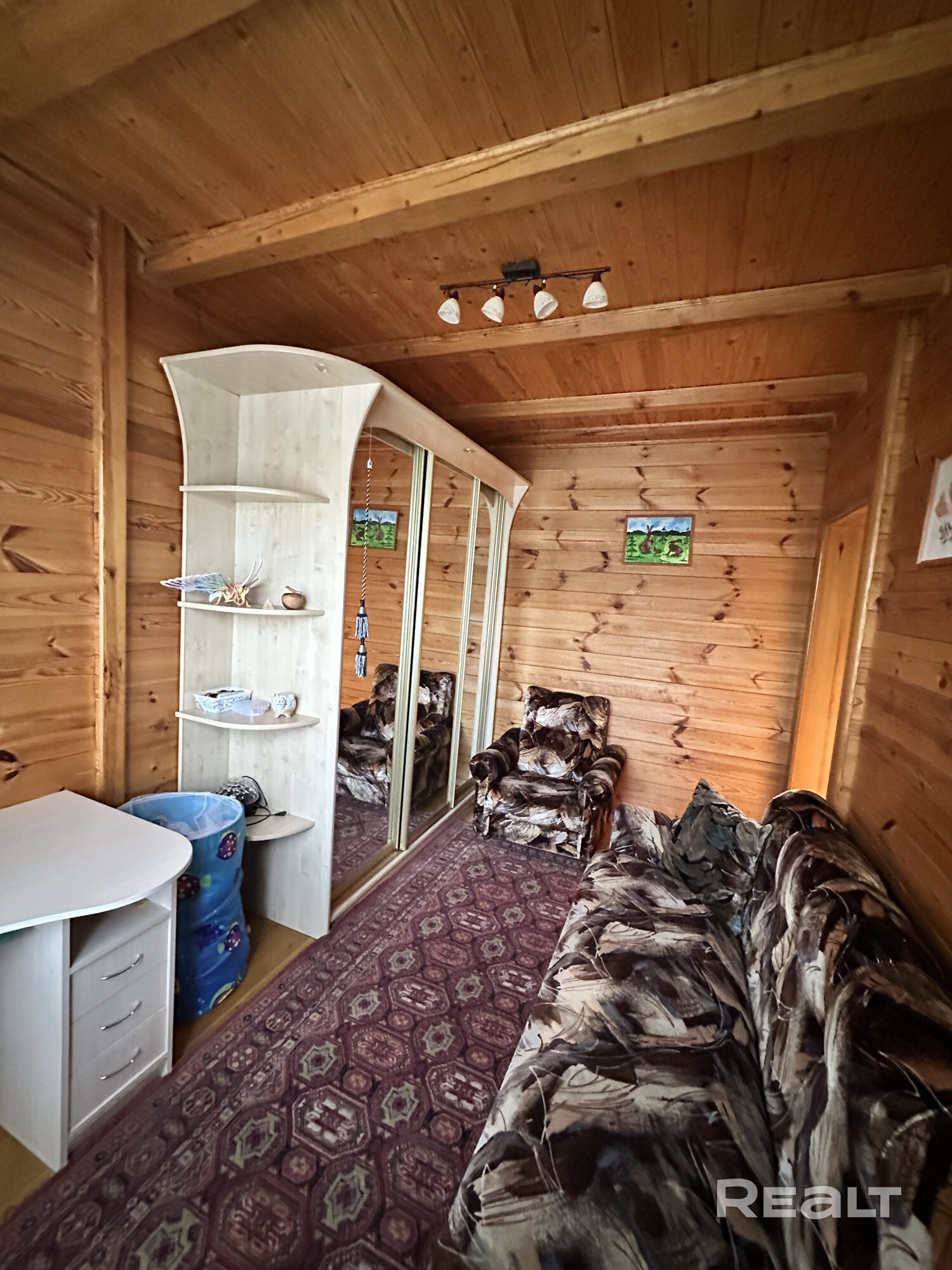Продается в 10 км от г.Жлобина, в живописном месте рядом с лесом (45 метров) и озером (50 метров) двухэтажный дом из брусьев. Отопление электробатареи и кондиционер.На участке имеется баня, гараж, беседка, мангал, теплица, туалет, сарай.