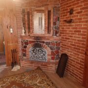 В доме на цокольном этаже гараж-мастерская, 380 V , баня с душем, глубокий,  сухой погреб и два помещения для хранения. На первом уроне веранда, кухня и три комнаты. Большая печь с камином ,плитой и лежанкой, которая обогревает весь дом. На втором этаже одна просторная комната со встроенными кроватями .