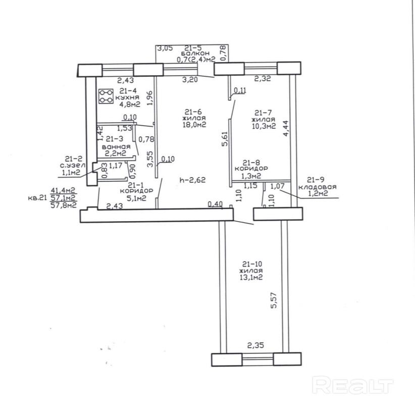 57.1 м²