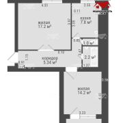Общая площадь квартиры составляет 51.2 кв. м. (по СНБ – 53.1 кв.м.), жилая – 31.4 кв.м., кухня – 7.8 кв.м. Сан.узел – раздельный. Комнаты изолированные.