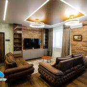 Встроенная многоуровневая система освещения и декоративных подсветок позволит создать в квартире атмосферу для любого случая.