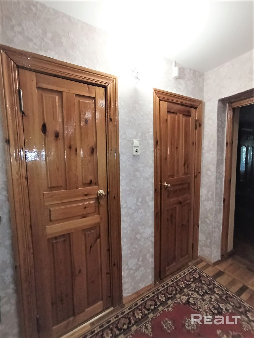 Двери и балконные рамы выполнены из массива, все окна - производства ПВХ Becker system, на полу в комнатах и коридоре - ухоженный паркет, на кухне - ламинат, на полу в санузле и ванной комнате - плитка. Удобно и практично оформлен тамбур. Практически все окна выходят в сосновый сквер, окно спальни на другую сторону, также в зеленый двор.