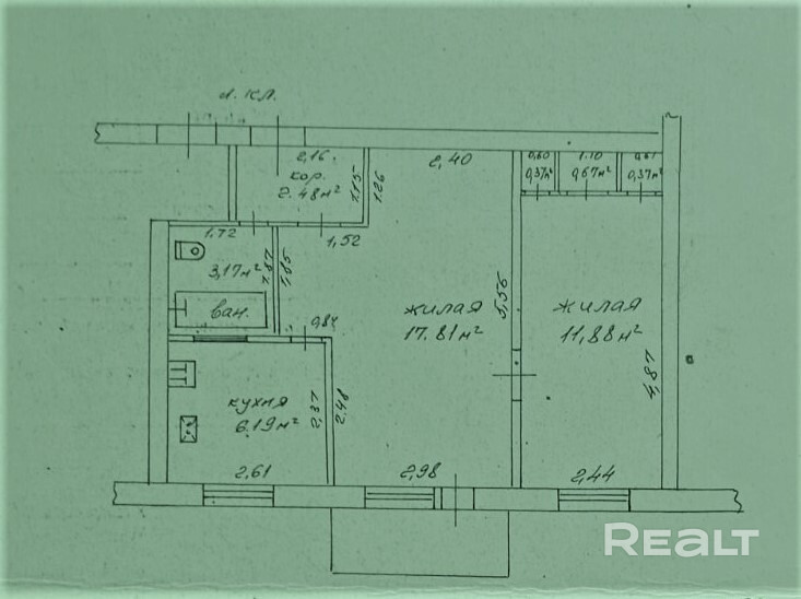 Общая площадь-43м2.