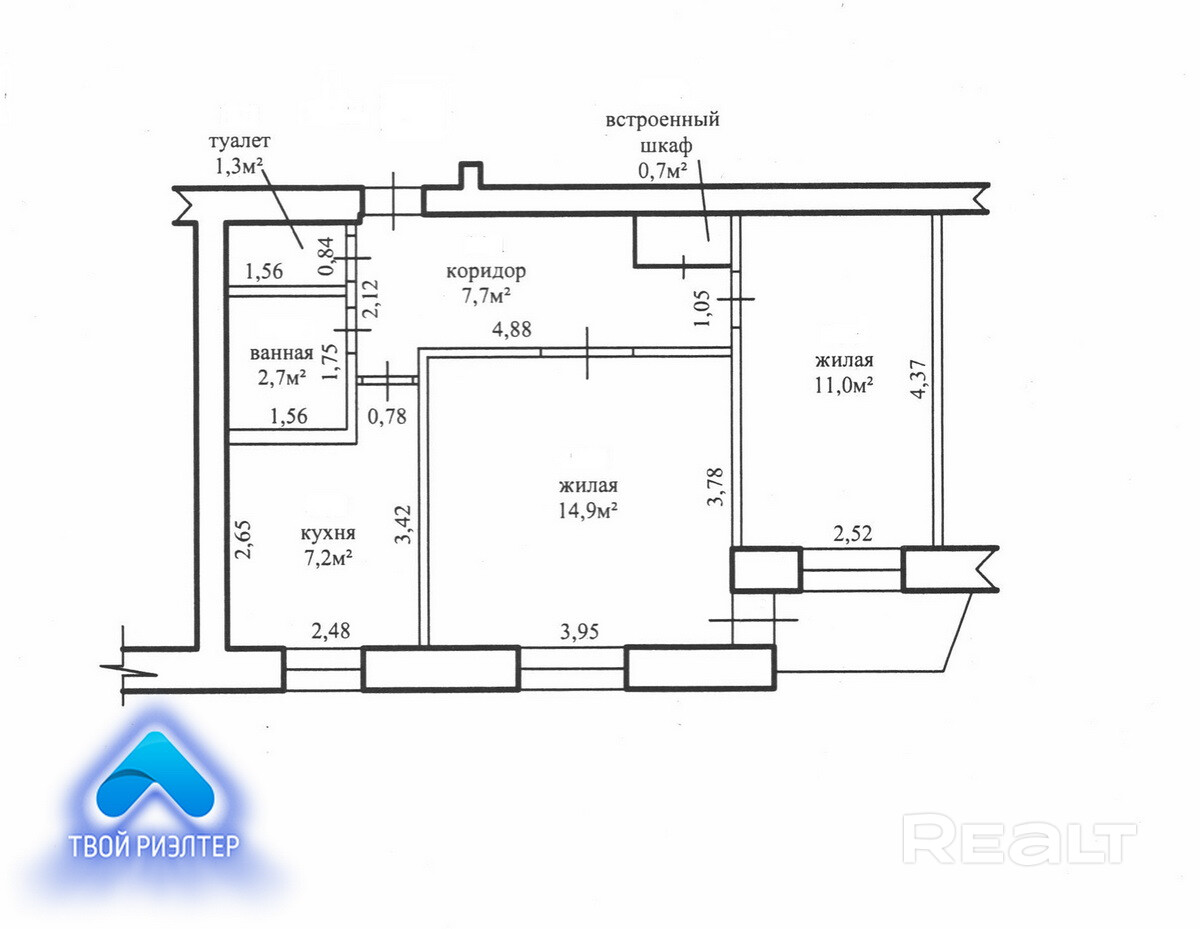 Предлагаем к продаже двухкомнатную квартиру, расположенную по ул. Молодёжная, 26 в городе Речица.