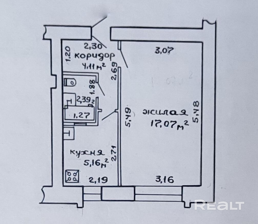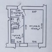 Площадь квартиры 28,73 м.кв. 17,02 жилая площадь.