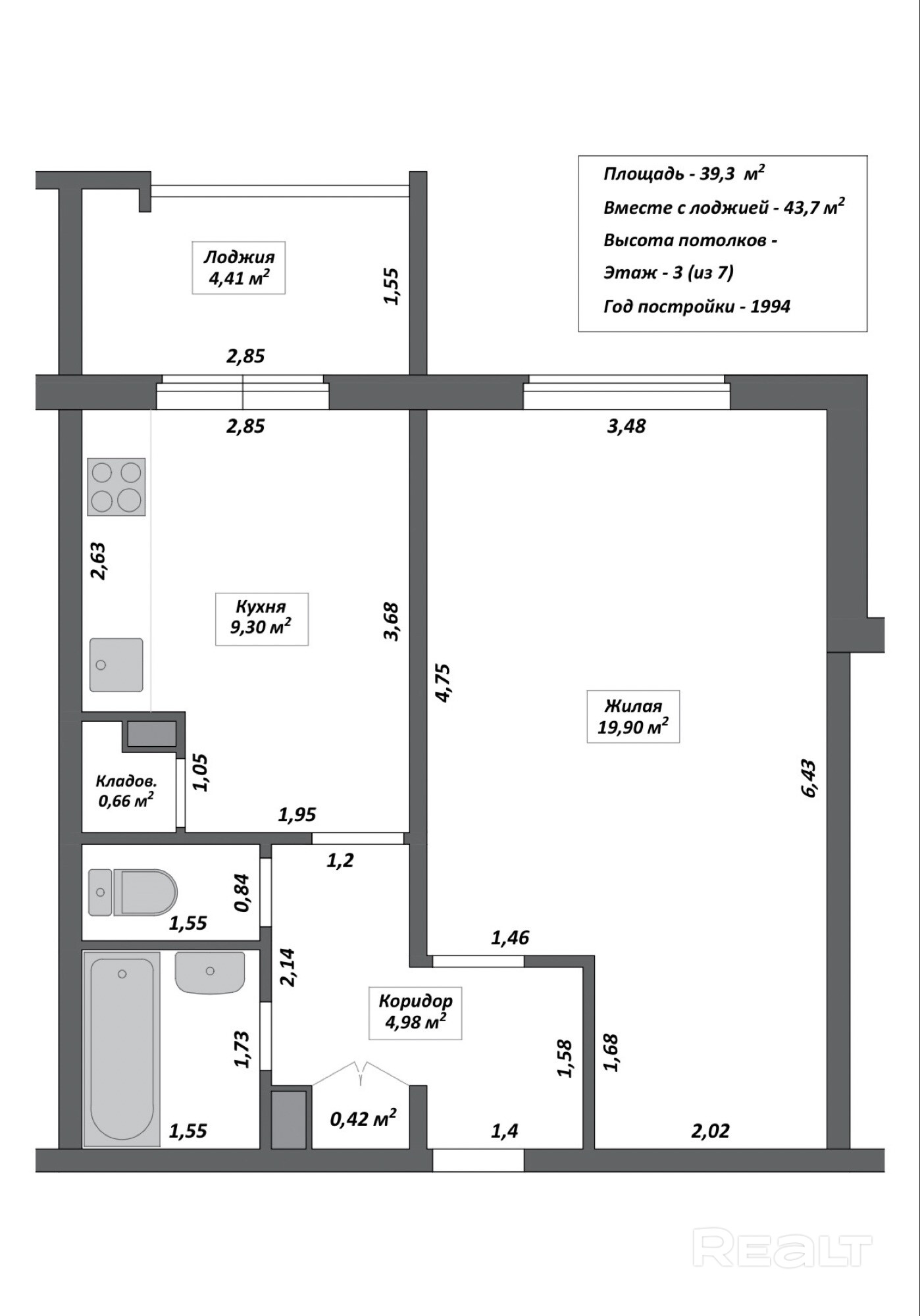 Купить 1-комнатную квартиру, г. Гомель, просп. Речицкий, 94