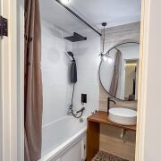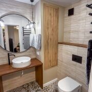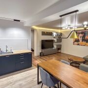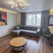 В квартире присутствуют эксклюзивные элементы, которые делают ее по-настоящему уникальной. Мебель из натурального дуба была изготовлена на заказ и включает кухонный и журнальный столики, а также столешницу и крышку инсталляции в ванной. Кухня и прихожая были привезены из Москвы и доработаны местными мастерами, что придаёт им особый стиль и функциональность. Шкаф-купе в прихожей оснащен усиленными стеклянными фасадами, подсветкой и доводчиками, а встроенный в стену сейф добавляет дополнительный уровень безопасности. В ванной комнате установлено зеркало с обогревом от запотевания, что очень удобно в условиях нашего климата. Вся техника в квартире – топового уровня, что делает жизнь комфортной и приятной.