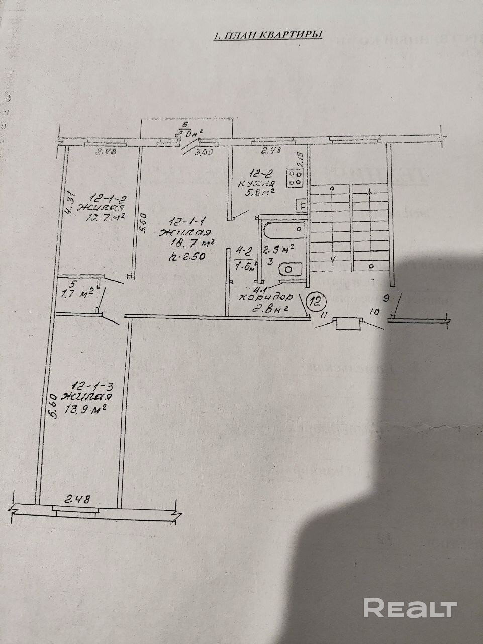 Уютная 3-комнатная квартира в самом центре Светлогорска. - Комфортная планировка: 2 изолированные спальни, выходящие на разные стороны света. - Современный ремонт. Заменены все коммуникации, установлены новые окна, розетки, межкомнатные двери. - Натяжные потолки, ламинат в жилых комнатах, линолеум на кухне и в коридоре, плитка в санузле. - Просторная лоджия со встроенными шкафами. - Кладовая с полками внутри квартиры. - Сухой подвал со стеллажом под домом. - Входная дверь — новая металлическая.