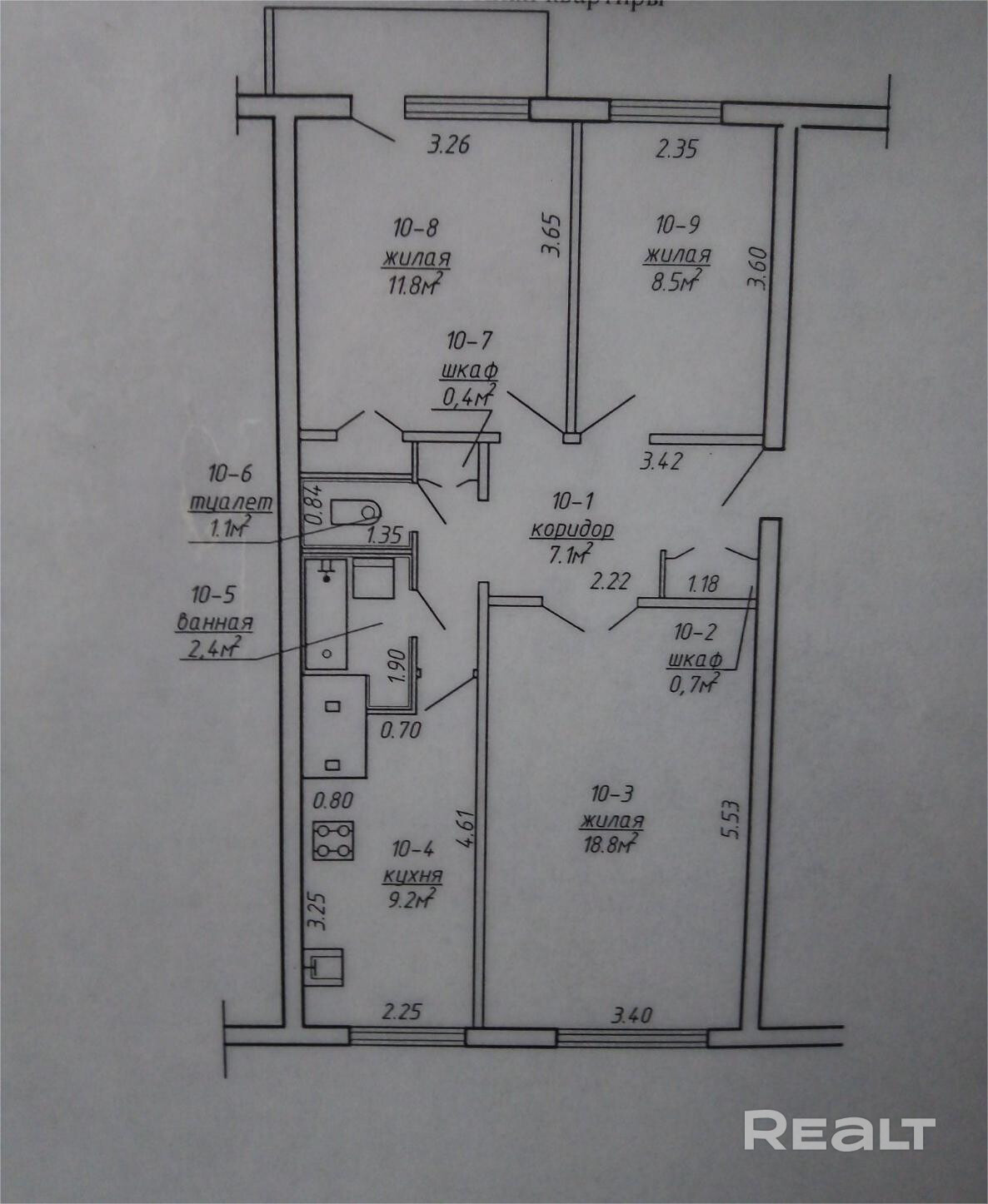 Купить 3-комнатную квартиру, г. Жлобин, ул. Ленинградская, 10