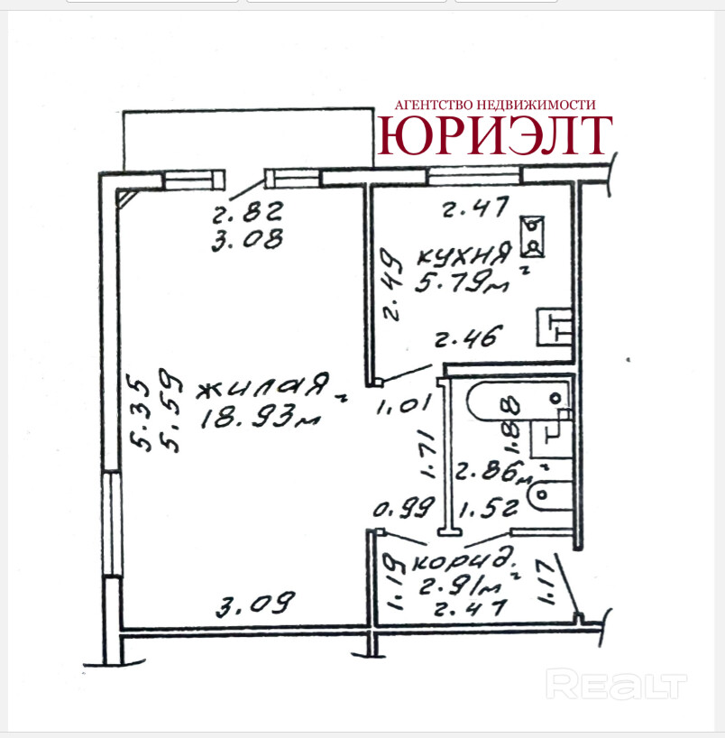 Продается однокомнатная комнатная квартира общей площадью 30,5м2.