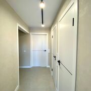 Лоджии- утеплены «Пеноплексом», стены выровнены, оштукатурены, покрашены. Проведен электрический теплый пол, розетки и освещение. Межкомнатные двери – современный МДФ. Входная дверь- металлическая (производство «Стальная линия»).