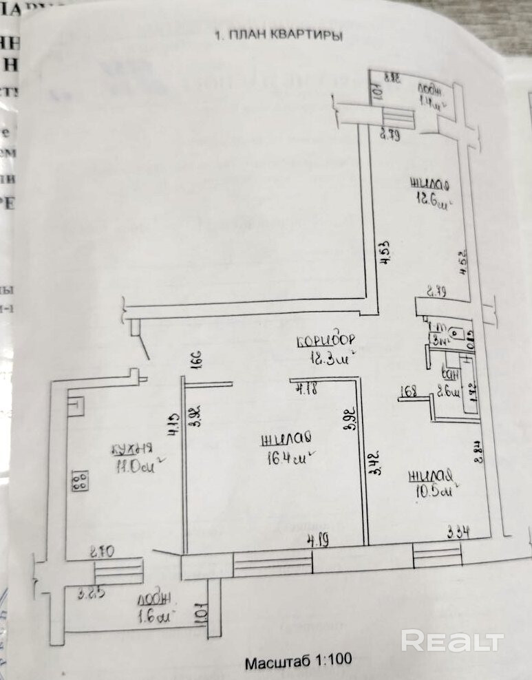 Жилая площадь: 39,5 м2.
