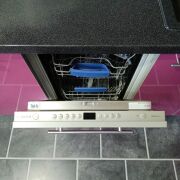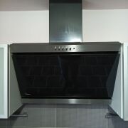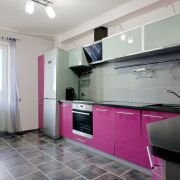 Кухня укомплектована всей необходимой бытовой техникой: духовой шкаф Electrolux, варочная панель Candy, посудомоечная машина Bosch и вытяжка Akpo.