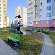 Отличное месторасположение. Рядом каскад озер, пляж, в 10 минутах ходьбы река Сож, лес. Парковка. Недалеко детский сад, школы, почта, парикмахерские, сеть магазинов Соседи и др. Хорошее транспортное сообщение во все направления города, до остановки транспорта пять минут.