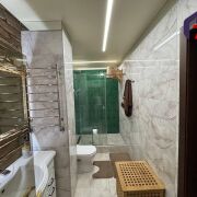 - Санузел совмещённый, выполнен с использованием плитки производства Италии. Дополнительный комфорт обеспечивает бойлер «Ariston».